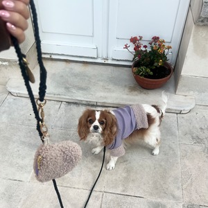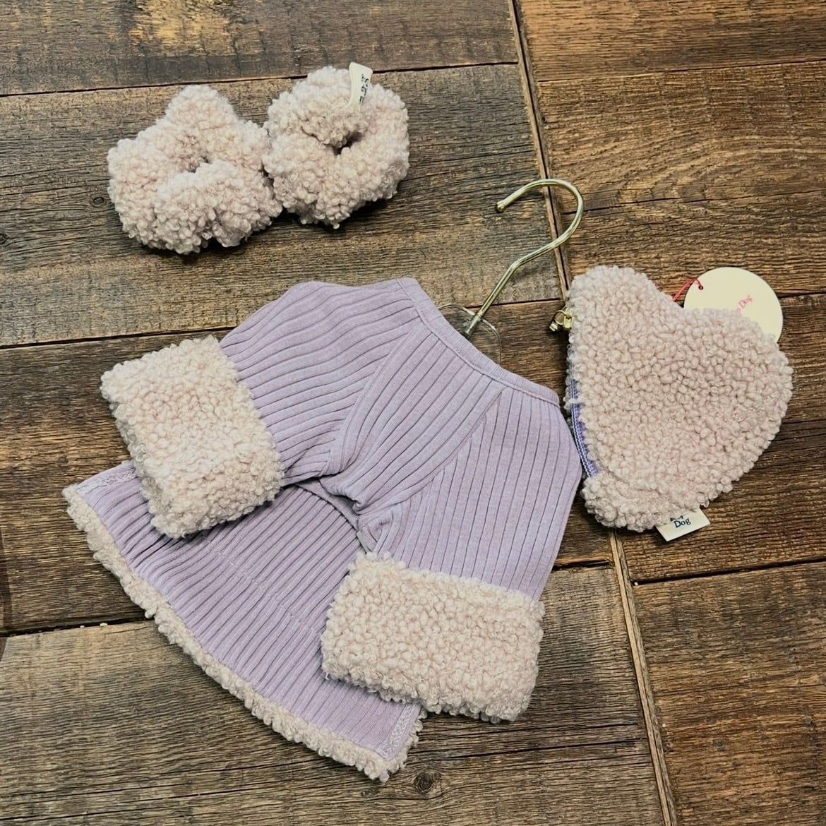お洋服のボアとお揃い素材で犬用ボアシュシュ